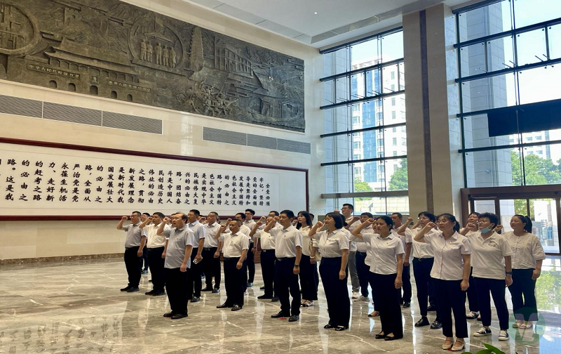 在省廉政文化教育館一樓大廳,全體黨員站在黨旗下進行了集體宣誓,重溫入黨誓詞。隨后在講解員的帶領下,黨員們依次參觀了中國古代廉政文化展、中國共產黨黨風廉政建設展、新時代河南全面從嚴治黨成果展、中國共產黨人的精神譜系展、中國共產黨人的家風檔案圖片展等展區。
